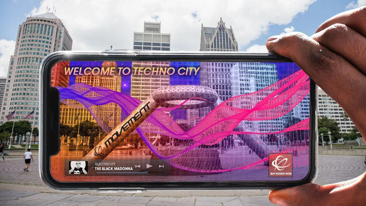 The AR interface turns Downtown Detroit into Techno City. Here, the city comes to life, moving with the music.
